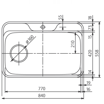 シンクの水栓穴の位置と径のサイズは図面に掲載されているものが標準タイプとなります。